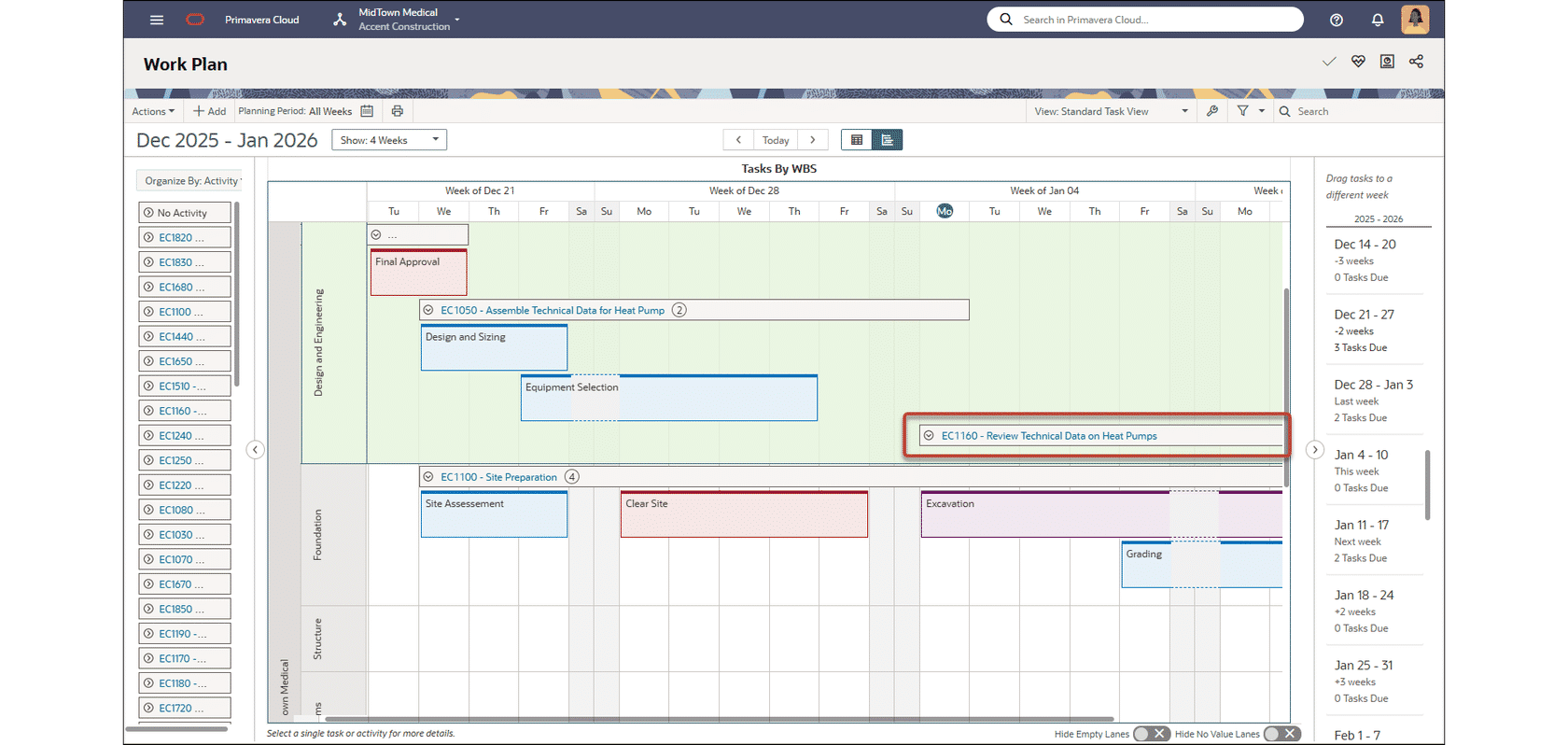 Task swim lanes on the Work Plan page now support empty activity bands. Streamline task planning by dragging and dropping a task into an empty band to automatically change its activity assignment.