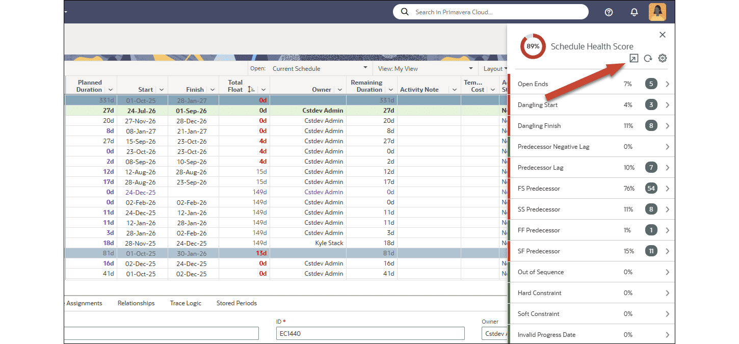 On the Activities page in Schedule, you can now add filters for baseline duration, units, and cost variance. For example, display only activities with a baseline duration variance greater than zero, to identify activities behind schedule. Original, current, and supplementary baseline values are available to use in filters.