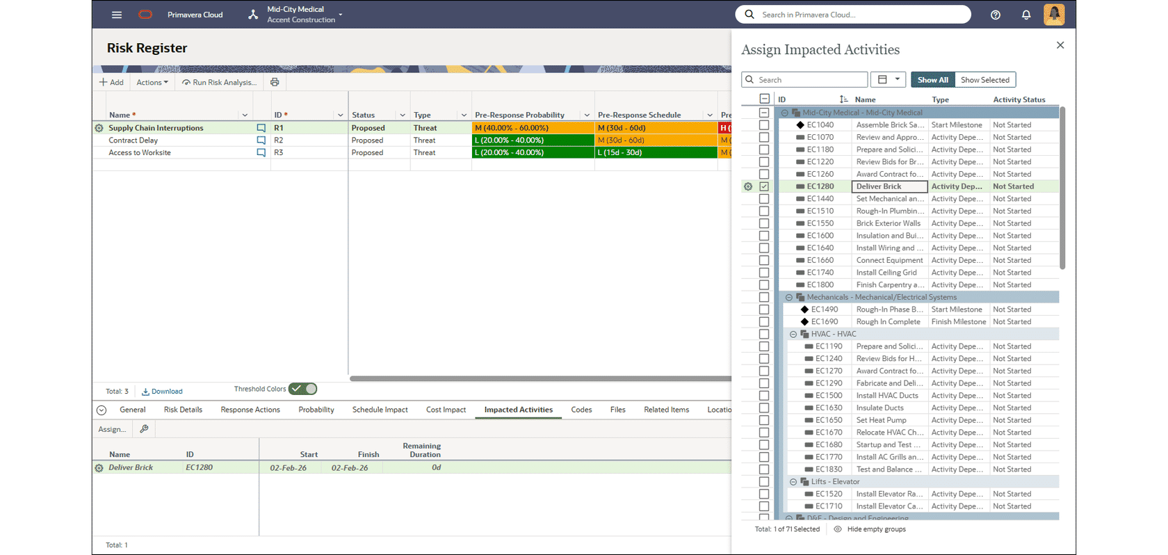 Assign Activities to Risks with the Enhanced Assign Impacted Activities Panel